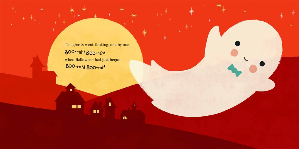 Inspired by the classic favorite, “The Ants Go Marching”, The Ghosts Go Floating is a Halloween counting story where ghosts, skeletons, witches, mummies, zombies, and more all join a march by the light of the moon. Where are they going? You can only find out if you read the story!  Colorful, friendly ghouls and ghosts march across the pages with with rosy cheeks and friendly faces. The repetitive text lets kids jump in and be part of the storytelling, calling out the “Boo-Rah!” cheer and “moon, moon, moon”, which leads into the next group of monsters to join the dance: “The goblins galloped, six by six, / Boo-rah! Boo-rah! / while waving clubs and pointy sticks. / Boo-rah! Boo-rah! / The goblins galloped, six by six. / They dragged their knuckles on pointy bricks / and they all trooped up the hill, / in the chill. / by the light of the moon, / moon, moon, moon”.