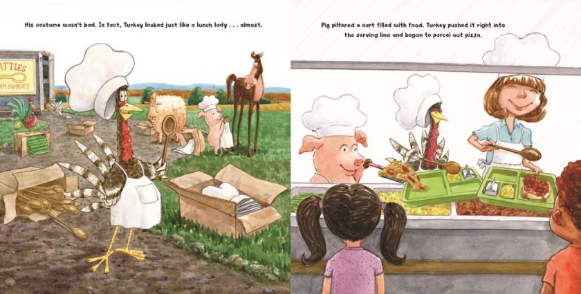It’s time to go back to school, and Turkey can’t wait! He and his friends at the farm are practicing their writing and math skills, getting ready to show off their big brains in the classroom, but the school bus brings with it the bad news: animals can’t go to school! Turkey just knows he has to show the students, teachers, and the principal that he and his friends belong in school, and he’s going to find a way to do it equipped with his brains and a closet full of costumes.