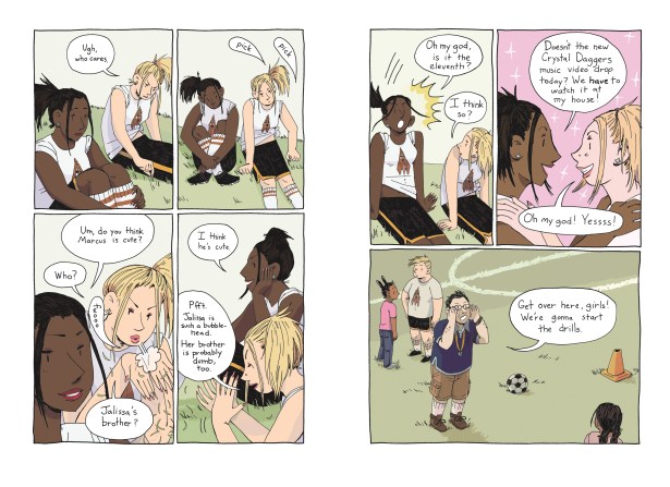 There’s a fantastic diversity among the group. There are queer characters, including one who’s transitioning, and characters of color. The storyline is moved forward by each character’s quest for identity and acceptance within their families and the group, making for some deeply heartfelt moments. It’s a book about friendship, self-awareness, and acceptance, set in a middle school – often a battleground for kids who want to stand out without being “different”.