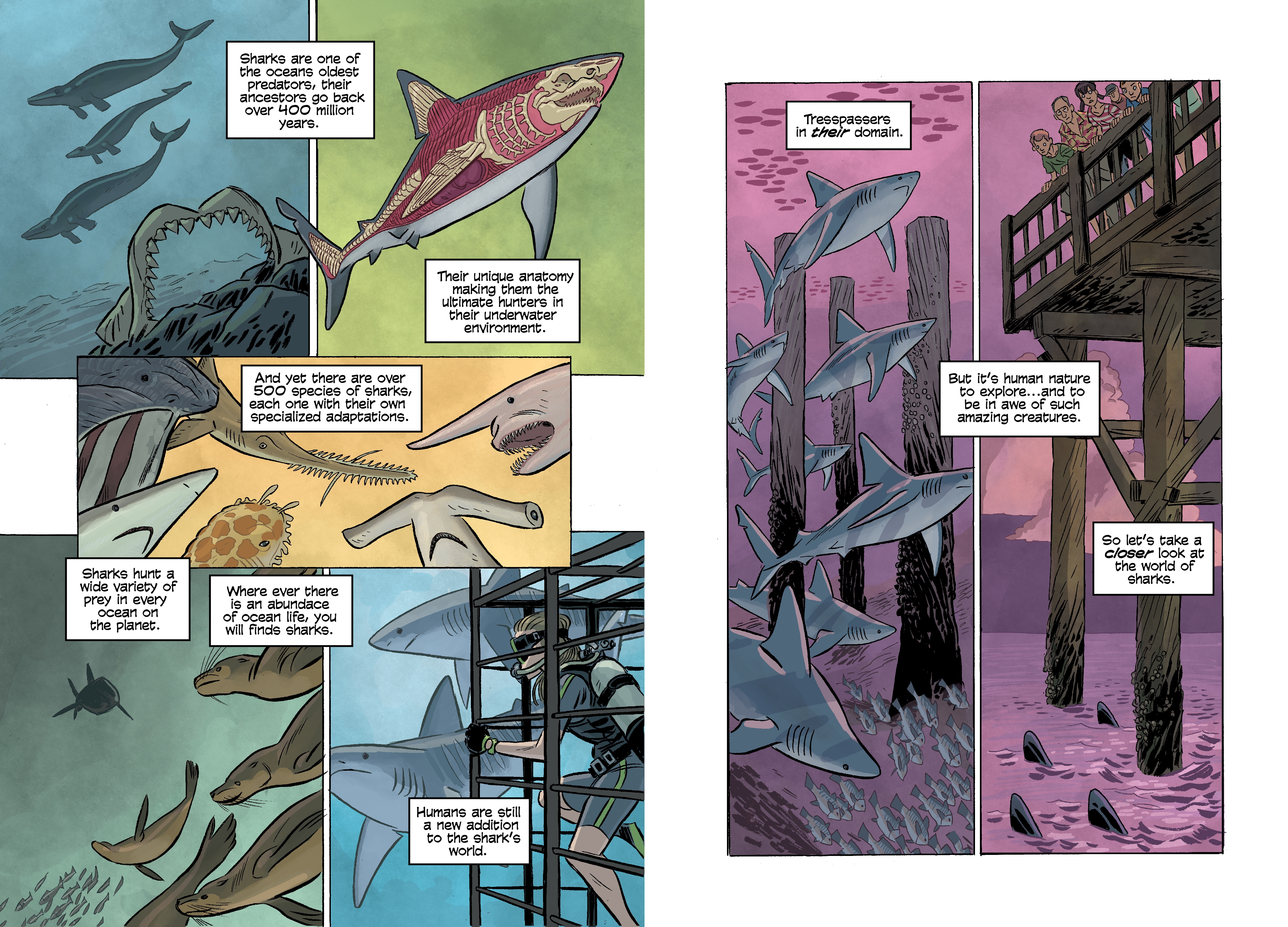 Superman Smashes the Klan is imperative reading. Gene Luen Yang’s storytelling always makes for incredible reading. Gurihiru’s artwork gives us iconic Superman moments; he calls to mind Action Comics #1 in a page where he hoists a car over his head, Roberta standing next to him, as they face shadowy, pointed hoods brandishing torches, chains, and baseball bats. Young Clark Kent lets his powers take hold of him as he defends a friend, rising in the air and letting laser vision unleash itself. He discovers his Fortress of Solitude, this time, underwater. The Clan of the Fiery Cross is horrific as they throw their hands high, welcoming a torch of flame in front of the Lee family home. So many powerful moments; he will make Superman fans out of every reader.