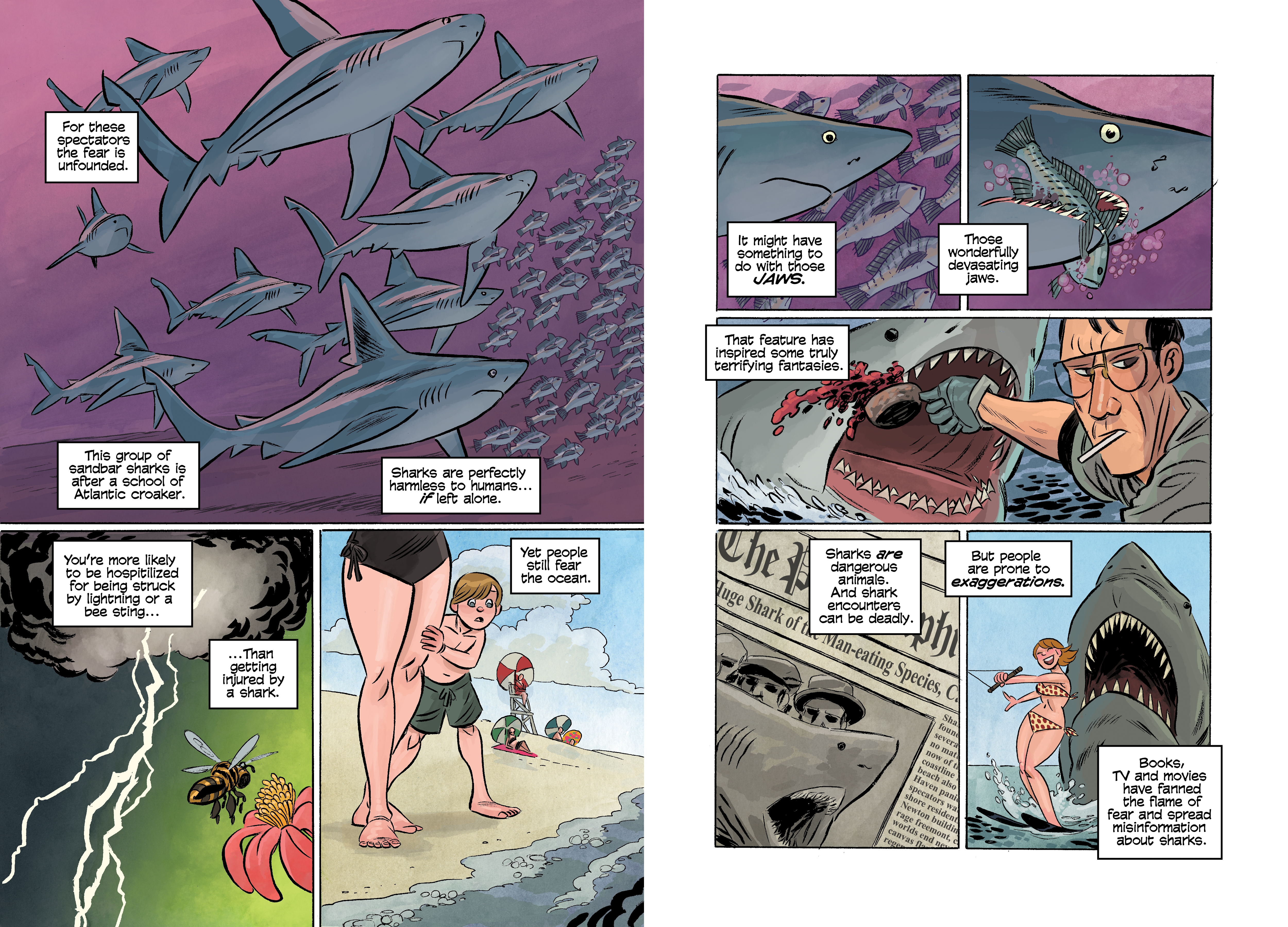 There’s so much going on here: strong subplots contribute to the main storyline of a white supremacist gang attacking a family and a town; we have Superman’s growing awareness of his power and the fact that he, too, is “not from here”, but “passes” because he’s a white male; Roberta, Lois Lane, and Superman working together to uncover the Clan before tragedy strikes; Tommy’s struggle to fit in; an illustration of generational racism at work; and a sinister plot afoot. Gene Luen Yang infuses the story with moments from history and his own life, and his author’s note, “Superman and Me”, at the end of the book, is an 11-page look at Superman, his place in US history, racism in US history, and the author’s own family story. A bibliography is available for further reading.