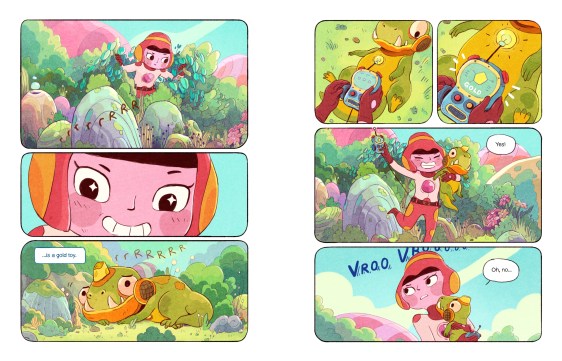 I’ll be honest, this one left me scratching my head – I didn’t always quite get what was going on, but I did appreciate the kid-friendly artwork and storyline: who wouldn’t want to read about toys coming to life? I booktalked this to a few of my library kids – all big manga fans – and they seemed to have a better grasp on the concept than I did, so go them! My best advice? It’s a fun, bright, kid-friendly graphic novel. Let your audience be your guide.