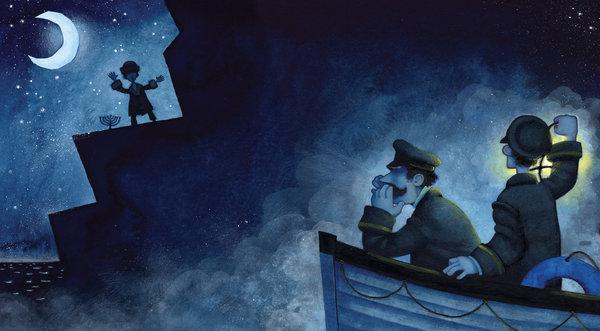 A tale of miracles follows Simon, a Russian boy, who leaves home and heads to America in search of a better life. Once he secures a job, he’ll send for his mother, brothers, and sisters. But the ship hits and iceberg, and Simon saves a man’s life by switching places in a lifeboat with him. He’s marooned on an iceberg on the first night of Hanukkah, with only his menorah, candles, matches, and some food, which he shares with a polar bear who happens by. Over the next few days, Simon and the bear shares freshly caught fish with him and keeps him warm at night, while he lights Hanukkah candles and tells her stories. He reflects on the seven miracles he’s experienced so far, and prays for just one more: to be rescued and make it to America. Simon’s optimism pays off, and he’s rescued; reunited with the man whose life he saved, he discovers that there’s one extra Hanukkah miracle in store for him – just like the menorah has one extra candle.