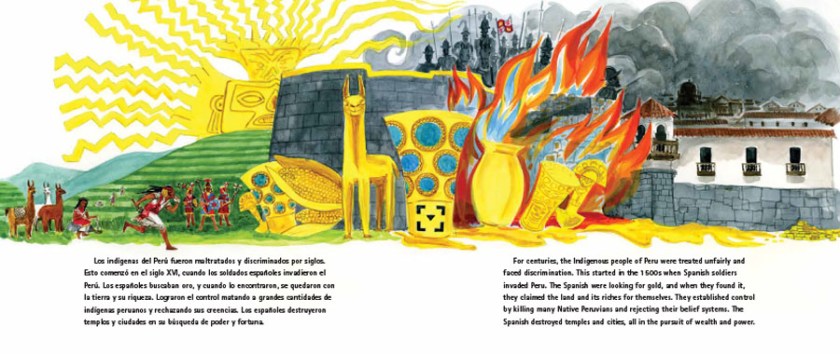 This bilingual (English/Spanish) biography of Peruvian archaeologist Julio C. Tello, nicknamed “Sharuko”, is a beautifully written, illustrated, and translated story of Julio Tello, an Indigenous boy growing up in late 1800s Peru, who became a leading expert in Peru’s Indigenous culture. As a boy, Sharuko – a nickname meaning “brave” in Quechua, the language spoken by the Indigenous people of Peru – explored caves and burial grounds in the Peruvian Andes. As he got older and continued his education, he read articles about skulls he had found as a child, which were sent to the city of Lima to be further studied. The article inspired Julio to devote his medical school training to study Peru’s indigenous history; going on to prove that Peru’s Indigenous culture was established thousands of years before, not inherited from other countries, as was the pervasive belief. He awakened pride in his country’s ancestry and its cultural legacy and became a hero to the people of Peru.