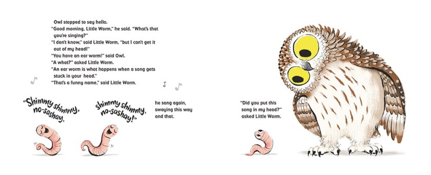 A little worm has a song stuck in his head! Where did it come from? He asks an owl, a chipmunk, a rabbit, and a fox, but they’ve all got their own songs! As they dance and sing their way across the story, Little Worm hopes to find out who put that ear worm in his head!