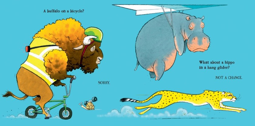 We are made up of all kinds of numbers, and Measuring Me is a great place to start when explaining some of those numbers to young learners. Using an “average five-year-old child in the Western World”, we learn that kids featured in the book are as tall as about 10 tin cans, with the ability to smell about 50,000 different smells, and with enough energy to power a light bulb. Using our bodies as a measuring stick, Kent gives readers information they can visualize, allowing them to play with numbers and their place in this world. Kids will develop a comfort with numbers and their own bodies through the fun facts and pictures. Colorful illustrations look child-drawn and feature an inclusive and diverse group of kids illustrating concepts. Endpapers feature a ruler running along the side of the page – inches in front, centimeters in back – with a wealth of items that appear throughout the book. Playful and easy to read, kids will love coming up with ways to use the world around them to come up with new ways to measure: how many board books high are you? Do you weight as much as a frozen turkey? There is a lot of fun to be had here; readers will want to come back to this one. The book comes with a double-sided height chart inside, measuring – you guessed it – with tin cans, and fun facts like, “A giant panda’s shoulder height is almost equal to seven cans”. One side is colorful and includes the fun facts; the other side is black and white, letting readers color in their own cans and fill in personal information to make it a keepsake. If you’re using your copy in the library or a classroom, you can include the height chart as part of a storytime and have readers see how they measure up.