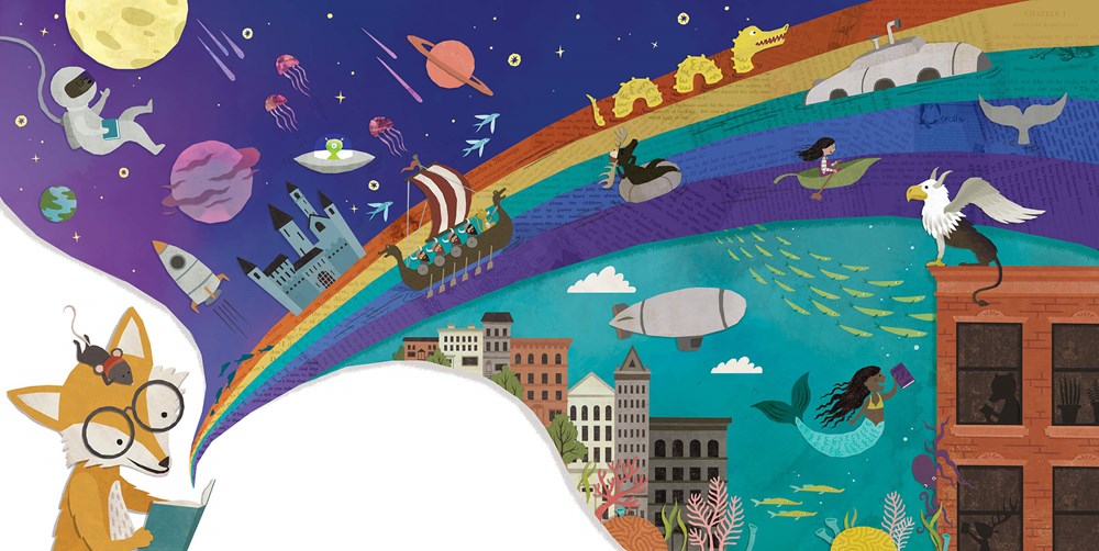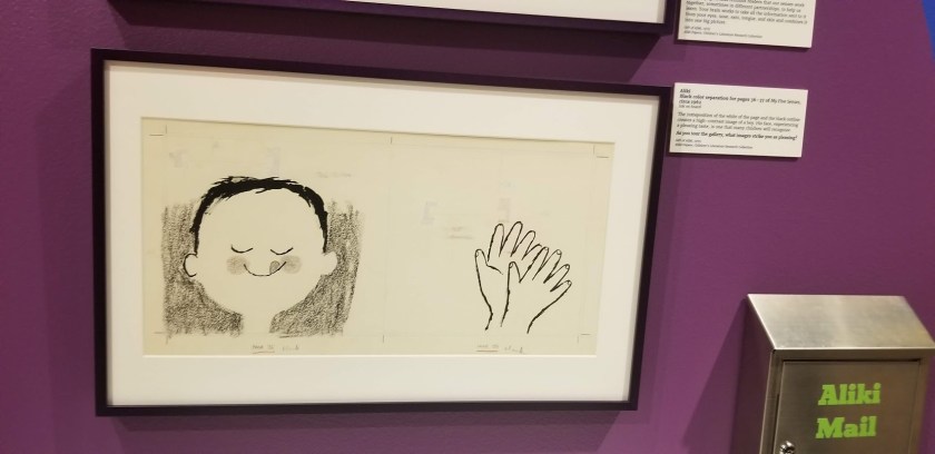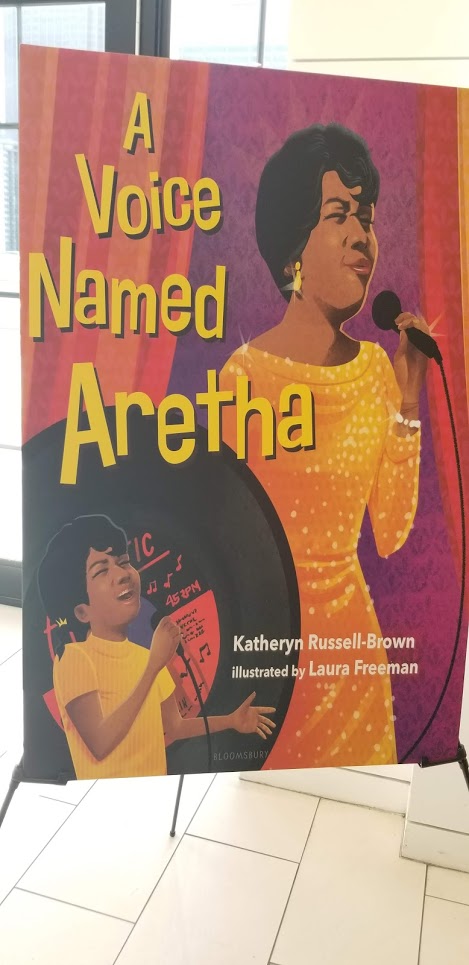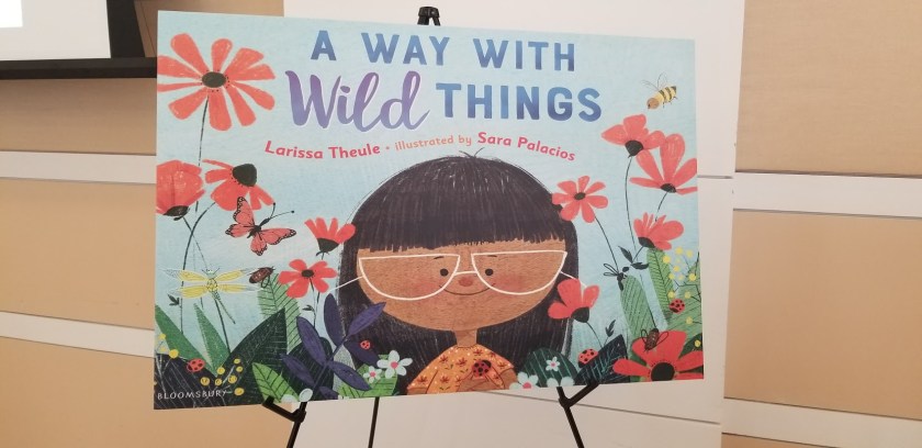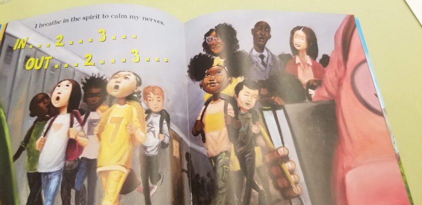 Inspired by Stone Soup, this story hits on so many things: the idea that the library is always there, but no one uses it; that ideas people have about libraries aren’t always the reality, and my favorite, that libraries are built by communities, for communities. The Littletown Library has always been there. Until it’s not when a tornaldo carries it away. A young girl named Nia wants to rebuild the library, but – in a series of panels every librarian will identify with – hears a lot of talk as to why it’s not a priority: “What’s the point? No one uses libraries anymore”; “That costs money, and I can’t spare a dime”; and of course, “My son and I get everything we want online”. Taking matters into her own hands, Nia comes up with a very creative idea to get her community to come together and create a library – first, as a community, then, within a building. There are wonderful moments as Nia brings townspeople together to create their own stories or remember stories and parts of writing that inspired them; one gentleman recalls Maya Angelou’s And Still I Rise; detectives and boat captains recall the works that they loved from childhood. The library reopening is a stirring statement on what we do: “everyone crowded into the library to admire what they had accomplished”. Children paint, read books, and write their own, new ones; grandparents learn to use computers; there’s a knitting class taking place. In an author’s note, Ian Lendler remembers how his grandfather helped rally his own community to build the library he dreamed of a kid, saying, “That’s when I realized – a library is an expression of a town and all the poeple who live in it”.