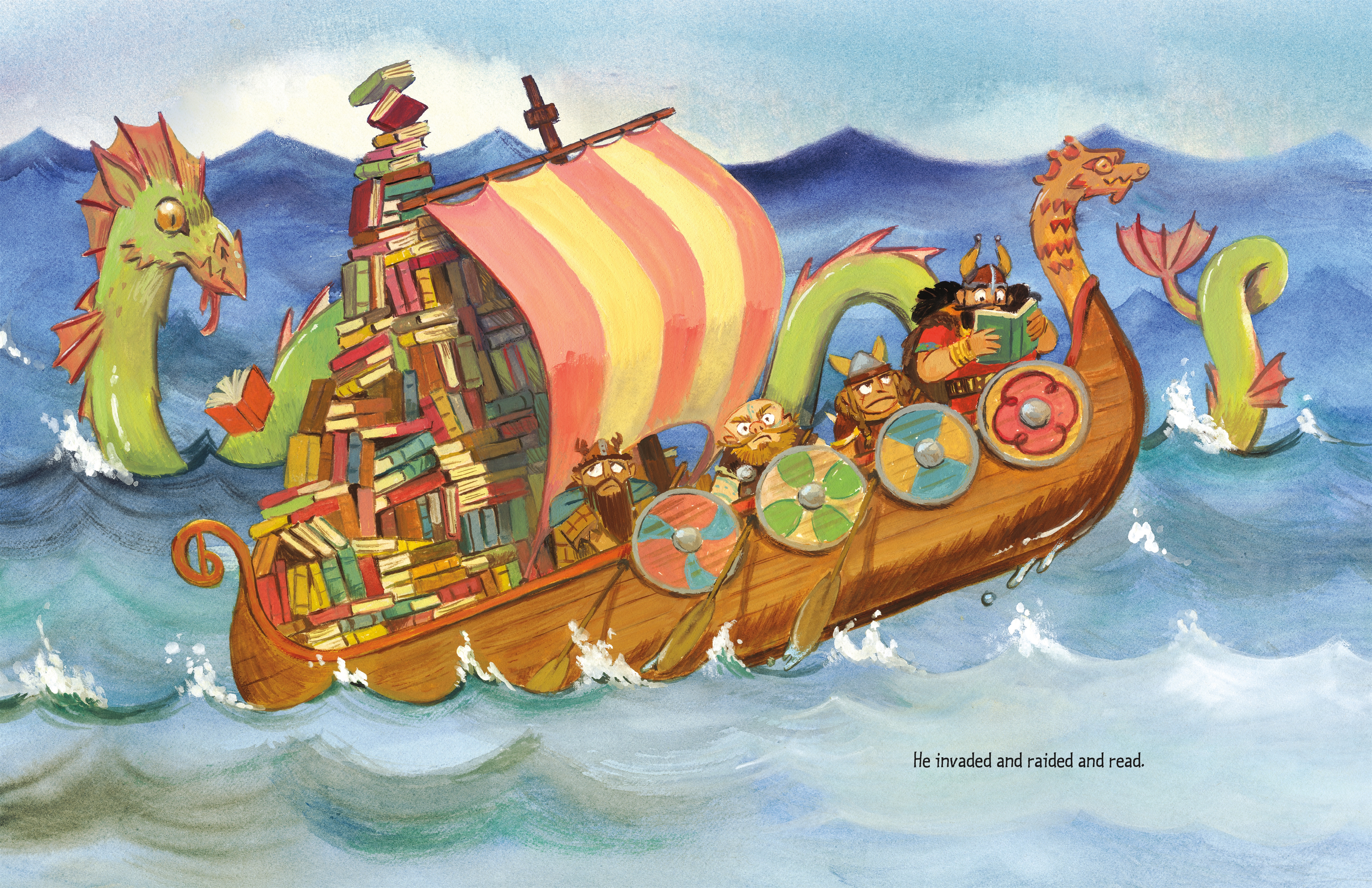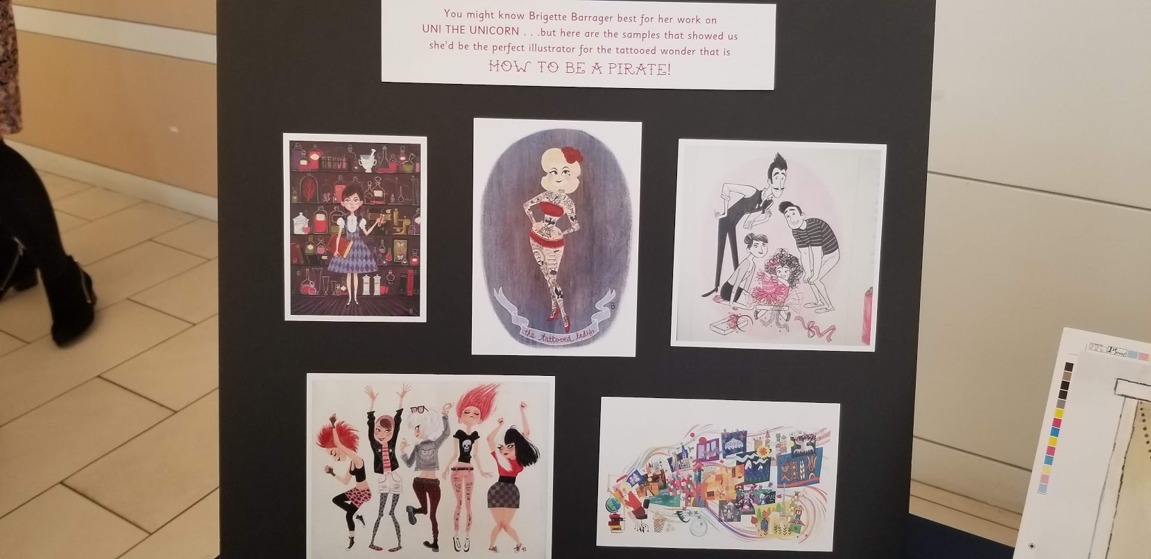 The Stanley books are the best career books I can offer to my little kids (you have to love a multi-tasker!), and Stanley’s Library is so much fun. The endpapers show all the tools of the trade, including a date stamp, stamped library card, author event ticket, and bookmark. There are great details throughout the story, too, like the labeled shelves and the books on them: the Horror section includes books on Owls, Cats, and Snakes, all predators to gerbils; History stocks books like Famous Gerbils and More Famous Gerbils; Cheese gets its own very popular section, as we learn later on. Stanley exhibits fantastic readers advisory and collection development skills as he makes sure to give books to his friends that are in just in line with their interests, too; he gives Hattie, who’s working on her motorbike, a book on traveling twisty roads, and Little Woo gets a book on pirates, as he works with Shamus on his boat. The Stanley books are such fun and such easy reading; they’re a hit for your shelves.