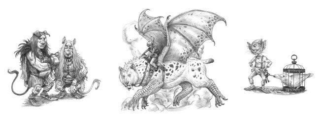 I have wanted to know more about Aleks since I first read that he was a changeling – and that his grandmother is, too! Readers won’t be disappointed; we learn more about Aleks’ origin here, and I love the inner conflict raging with Aleks as he realizes that there is no black and white situation: he initially thinks it’s not a big deal at all to give up his fey gifts, but learns that not only can his ability to find things be a huge help, he learns that his fey side is very much a part of him. Don’t know what you got ’til it’s gone? Aleks may just have to learn that lesson that hard way. I loved seeing how the group of friends has matured – crushes are a big part of the story now! – and how new friends from the previous series are now part of the group, like Hector, the Hart of the Forest. Big plus: my favorite wyvern, Norwick, is back, as is my favorite curmudgeon, Mr. Brown(ie). Take a look at this graphic, from illustrator Eoghan Kerrigan’s DeviantArt page: