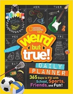 Let’s start with the backpack essential: The Weird But True Planner ($12.99, ISBN: 978-1426327933). The Weird But True books come in second only to the NatGeo Kids joke books when it comes to demand in my children’s room. It’s got the planner essentials: it’s spiral bound and sturdy, so kids can use it and it will hold up. It’s got paper that won’t tear when you turn a page. You know that paper; it’s usually the one that flies away and has the details of your homework on it. The space is smartly laid out, with NatGeo’s trademark gorgeous photos sharing space with planning and goal pages that help your kids keep it together during the school year. And because it’s NatGeo, it’s got the fun, weird holidays, crazy facts, pages for scribbling areas where you need homework help, little writing prompts, and an overall fun vibe that demands you embrace your weirdness. I have a copy that I desperately want to keep for my own library notes, programs, and scheduling the lives of my weird family; now, the key is making sure the kids don’t take mine off my desk at work OR at home.