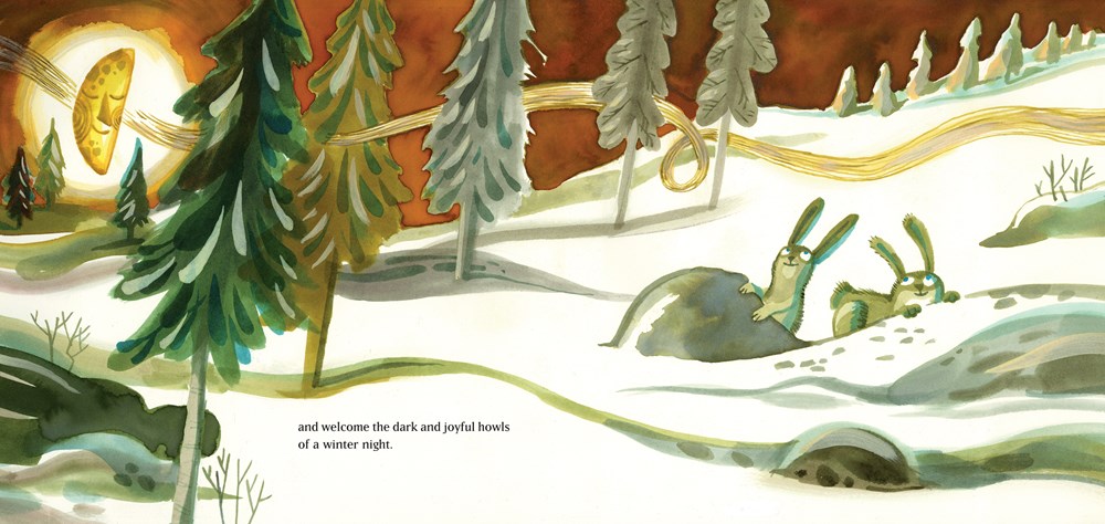 One night, the moon shines so big and so brightly that it becomes to heavy to hold itself up and tumbles down, shattering as it crashes into our world. A girl named Luna witnesses the fall, and, horrified, wakes her grandfather. Grandfather gravely worries about the Earth without a moon, and the two set about collecting the pieces to mend the moon, aided by a group of forest animals. A gorgeously illustrated story with the fantastic feel of a legend, Mending the Moon will delight readers and get a workout as a storytime favorite. Breathtaking illustration shows a cadre of animals working side-by-side with Luna and Poppy; a purple and blue-tinged white backgrounds bring the moon’s cool beauty to the pages, and vibrantly colored animals and people alike are cartoony and kid-friendly. There is magic in every turn of the page as readers will wait breathlessly to find out whether or not the moon will make it back to the sky. Endpapers show a cool, crisp night with moths fluttering around the moon’s light, and Poppy and Luna’s cabin atop a mountain. Mending the Moon is a lovely starting point to talk about legend, STEM (moon concepts!), and the larger idea of working with nature to keep our world safe.