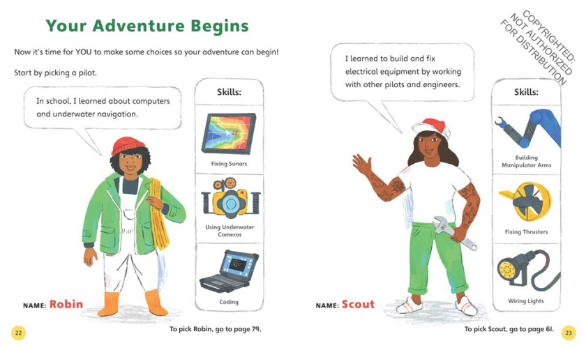 Choose your own adventure, nonfiction style! Readers can learn about the elusive giant squid while navigating their own adventure. The stage is set: the team is going on an expedition to find a giant squid. Readers can choose a scientist, a submersible, and a dive site, and each choice leads to a different adventure. Does every adventure end with a squid encounter? Maybe, maybe not, but there is a lot to learn and see. Colorful illustrations, a diverse and inclusive group of scientists to choose from, and comic book pacing, word bubbles, and explanations make this a great way to engage readers and interest them in STEM studies. Search for a Giant Squid has a starred review from Booklist.