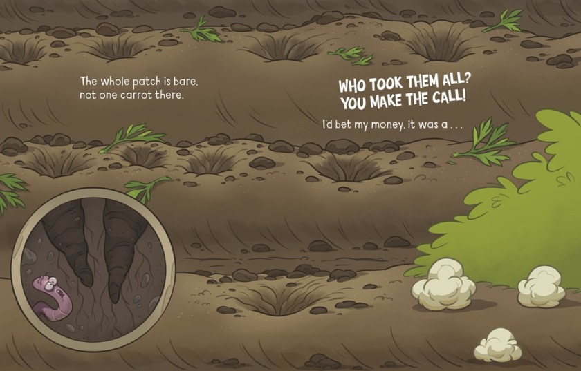 This laugh-out-loud farm mystery is perfect for a rollicking read-aloud. Nighttime moos, missing carrots and splattered mud, what is going on at the farm? The rhyming verse and pictures give readers just enough clues to make a guess… and the reveals hilariously defy expectations! Endpapers show silhouetted animals, wide-open eyes showing through; cartoon artwork is appealing and made for fun readalouds. A sweet story about relying on assumptions and keeping an open mind, this is a great way to get new students ready for a new school year. Pair this up with Sandra Boynton’s Barnyard Dance and Doreen Cronin’s Click Clack Moo books for hilarious barnyard fun.