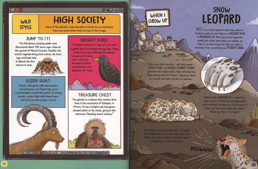 With comic book art and pacing, this look into the “secret lives of astounding animals” is a fun, informative add to animal collections. Organized by habitats and lifestyles, The Wild Life of Animals covers areas including oceans, rivers and swamps, grasslands, deserts and polar regions; nocturnal animals get their own section. Profiled animals tell their stories from their personal experience, with a sense of humor to educate and entertain: the Pygmy Hippopotamus, for instance, yawns, showing their tusks and teeth, and coyly asks, “is this a warning or am I just yawning? Come any nearer and you’ll soon find out!” A glossary is there to help readers learn new terms. Originally published in Great Britain earlier this year, this is a good volume for intermediate learners who enjoy animals; the graphic novel format makes this an excellent add to nonfiction and graphic nonfiction shelves.