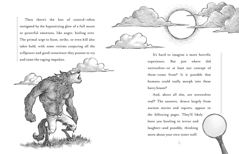 This series is so good. I’ve read Werewolves and Zombies, and love the way Erin Peabody weaves history with pop culture to present a paranormal guide that kids will love reading and learn from. There are black and white illustrations throughout; cartoony, bordering on downright freaky. Zombies delves deeply into the history of slavery and its ties to the rise of the zombie legend and the practice of voudou; Peabody also talks about the walking dead being very old news; they were showing up in Mesopotamia long before Robert Kirkman ever thought up Rick Grimes and his band of survivors. Werewolves talks about the history of animal lore and famous “were-beasts” in history, like the Gandillon siblings – a French brother and sister who were convinced they were wolves and acted accordingly. Harry Potter, Scooby-Doo, and Twilight all get a shout-out in this fun look at werewolves. There are further sources for kids who want to read further. Other Behind the Legend books include Dragons, the Loch Ness Monster, and Bigfoot. This is an absolute must-add set for kids who love themselves some pop culture paranormal reading (and half the price of most series nonfiction, library-bound books).