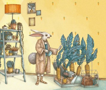 The artwork is warm, with earthy shades of green, orange, and muted, darker colors; there are some great textured patterns that make me think there may be some collage here. The illustrations give a comfortable, close feel to the story.
