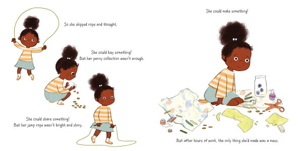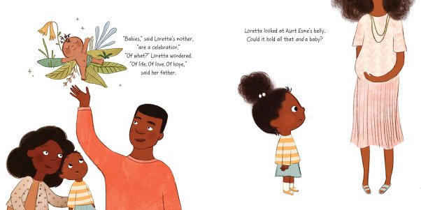 Loretta is a little girl who’s so excited when she learns that her aunt and uncle are having a baby! Everyone is busy getting ready for the baby; making things, buying things, preparing a room, but try as she might, Loretta can’t seem to make the perfect gift. When Baby Gabe is born, Loretta feeds with him and plays with him; she adores him and he has the biggest smiles for her. At Gabe’s first birthday party, Loretta is sad that she doesn’t have a gift for him yet, but when he falls and hurts himself, Loretta knows just what to do. Turns out, love is the best gift of all.