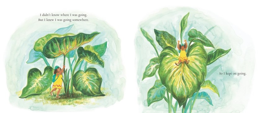 A young girl and her father go for a walk in the park. She wants to go somewhere she’s never been before, so she kisses her father goodbye and wanders off to explore. She’s aware of every sight and sound, every color and texture, and collects souvenirs to bring back to Daddy, who’s waiting for her… so they can go somewhere else together. Watercolor and ink illustrations envelop the reader in a verdant, colorful setting that goes from park to adventurous landscape that provides a sense of wonder as the girl becomes smaller against the large bushes and trees she encounters, the flora and fauna she interacts with, and the perspective of the artwork. It’s a poetic story about a small moment in time that every parent and caregiver knows is coming: that moment where we have to let go, even just a little bit, to encourage a child’s independence. Here, the girl’s father is close, but never intrusive; he lets his child return to him after having a solo adventure. Once reunited, the two discover another new “somewhere” together. Keep this one in mind for Father’s Day, too; it’s always great to get a father-daughter book. Pair with Mi Papi Has a Motorcycle by Isabel Quintero and Hope Lim’s I Am a Bird. Get a teacher tip card from Candlewick’s website.