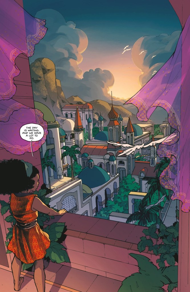 The artwork is stunning. The colors, the shading, the depth, bring this book to life in a reader’s hands. The story builds to an incredible conclusion that made the world come to a halt around me as I took it all in. Adora and the Distance is a father’s love letter to his daughter in the best way he could reach her; the best way to let her know he sees her. Adora and the Distance is a story of autism, you see; Marc Bernardin’s author’s note at the end of the book  explains his impetus for creating this epic tale. Adora is smart, brave, and full of love.  There’s humor, adventure, family, and forgiveness all here, bound into this story that connects a father to his daughter.