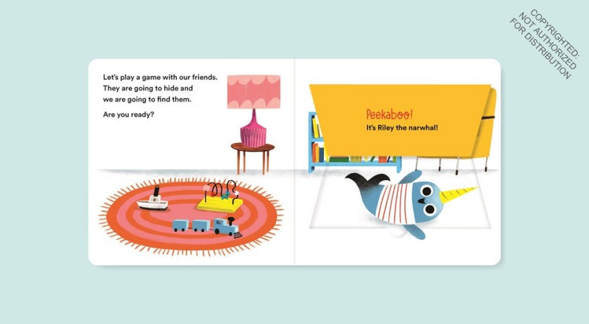 Twirl Books has more Beginning Baby books this Fall! Hide-and-Seek Peekaboo is a fun lift-the-flap version of the game, where you and a group of animal friends play together as you look for them under tables, behind chairs and curtains, and under blankets. If you have other Beginning Baby books, you and your little ones may recognize the familiar faces; animal friends like Riley the Narwhal, Mia the Monkey, and Gabriel the Giraffe are the same group we saw in earlier books. Questions on each spread get readers wondering who’s hiding, and guide them to the flap location: “Who is behind the curtain?” Who is behind the pillow?” Pair with Shasha Lv’s board book, A Little Snail Book: Hide and Seek, for more concept fun.