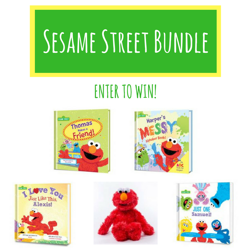 You’ve got a chance to win your own Sesame Street personalized book bundle, including personalized copies of The Messy Alphabet Book, Sesame Street: Just One You!, Sesame Street: I Love You Just Like This!, Sesame Street: Let’s Make a Friend, and an Elmo plush toy! Enter the Rafflecopter giveaway for your chance to win: