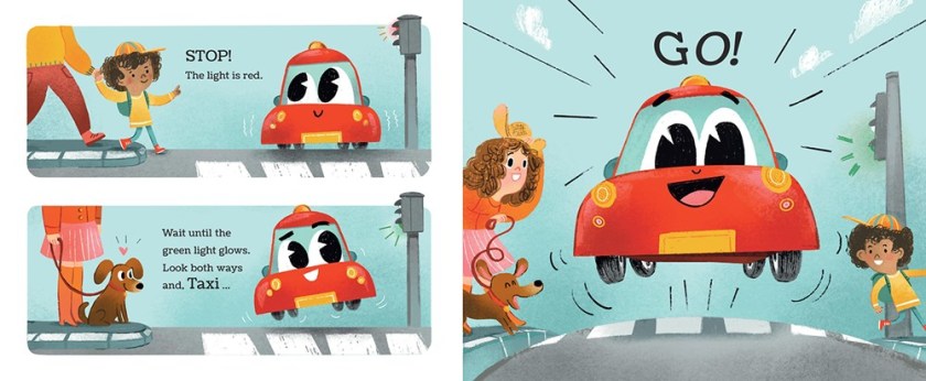 The animal friends celebrate baby’s new milestones with stories about daily routines: Panda goes through a morning routine of waking, washing up, and getting dressed; Bunny enjoys a tasty lunchtime; Elephant has a bath after playing in the mud all day, and Whale gets ready for bed. As baby reaches 6-9 months, these rhymes parallel a baby’s busy day and include questions like, “Have you finished, Little Bunny? / Let’s clean you up, don’t wait!” and playful phrases like, “Gently, gently, with a towel, / Rub-a-dub-a-dub! / All clean, Little Elephant… / …till the next time you find mud!” A cheery splash of orange joins the blue, black, and white illustrations and makes the animals’ patterns stand out, easily recognizable. An adorable way to go through the day’s activities and teach babies about routine.