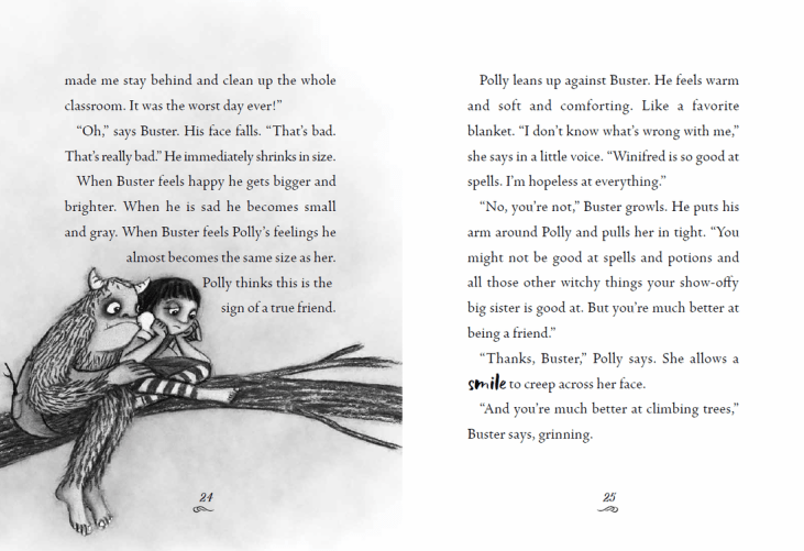 Okay. So, let’s talk the newest book in the Tales from Deckawoo Drive series. Stella Endicott loves school and loves her teacher, Miss Liliana. She’s so excited to work on her assignment, to write a poem, because she knows just who she’s going to write about: Mercy Watson, the pig who lives next door and relaxes on a couch! She creates a lovely poem, but class know-it-all Horace Broom insists that she’s lying: wizards don’t play accordions, and pigs don’t live in houses! Annoyed not only by Horace’s lack of imagination, but the fact that he called her a liar, Stella shouts back at him, and the two are sent to the principal’s office, which leads to an adventure where the two will learn to see things from the other’s point of view.