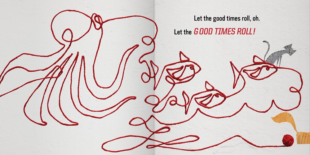 I’m a 70s and 80s kid, and Akashic’s LyricPop books give me such joy. This latest one is based on The Cars’s 1978 hit, “(Let the) Good Times Roll”. Rob Sayegh Jr. brings a playful spin to this song with two cats, a ball of yarn, and a lot of imagination. The two cats play together as they create waves, rainbows, and zooming planets and stars with the yarn, frolicking through lyrics like, “Let them leave you up in the air. / Let them brush your rock and roll hair. / Let the good times roll”. It’s playful, it’s bright, it’s just fun: just what your ’80s storytime needs.