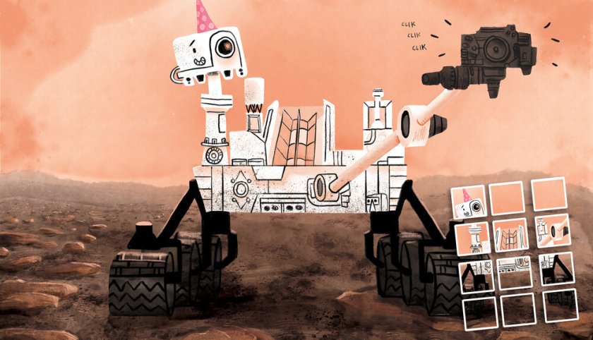 I get such a kick out of the Rover books that have been hitting shelves, introducing the Rovers as kid-friendly robots wandering around Mars. This latest one, Rover Throws a Party, inspired by the Curiosity Rover, is a great mix of fiction and non-fiction for preschoolers and early elementary learners. Rover is planning the best party in the universe to celebrate an anniversary on Mars, and there is so much to do! Will someone – or something – join Curiosity to celebrate? As the Curiosity trundles through each spread, there’s a fun story to read; a step in the party planning, and a fact about Mars or the Curiosity, related to the storyline. As Curiosity captures a sunrise, the accompanying fact tells readers that Mars sunrises and sunsets appear blue; Curiosity invites NASA to the party, and we discover that it takes about 20 minutes for a radio transmission to reach Earth from Mars. The digital artwork is bright and fun, instantly eyecatching, and just adorable: Curiosity wears a party hat on the cover; how can you pass that up? Endpapers feature NASA Mission Control and the Mars landscape, with party invitations and confetti strewn about. An author’s note, a bibliography, and Rover fast facts make this a storytime, science time pick.