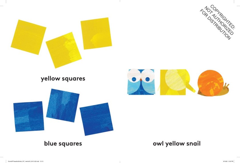 I love a Carter Higgins book. Her 2021 book Circle Under Berry played with shapes and colors, and concepts of proximity in a charming, fun way; he’s back with Some of These are Snails, which promises more rhyming, concept fun. Now we’re learning to sort: Higgins introduces colorful animals and shapes, inviting learners to sort them out: “Can you sort by color? / Can you sort by size? / Can you sort by shape or find the animals with eyes?” Higgins also works with size, putting three shapes together to demonstrate how some are bigger than others, reinforcing which shape is which for reference: “big bigger biggest / owl square purple / small smaller smallest / orange turtle circle”. It’s fun to read, fun to listen to, and the brightly colored collage artwork will keep everyone’s attention (and makes for a fun after-program craft: get paper plates and tissue paper!). There are so many ways to read this story during a readaloud: audience participation, felt boards, cutout shapes, shakers to invite readers to chime in when looking for “animals with eyes” or bees versus ovals. Absolute fun and proof that learning is delightful. Visit Carter Higgins’s author webpage for free companion resources to her books, including Some of These Are Snails.