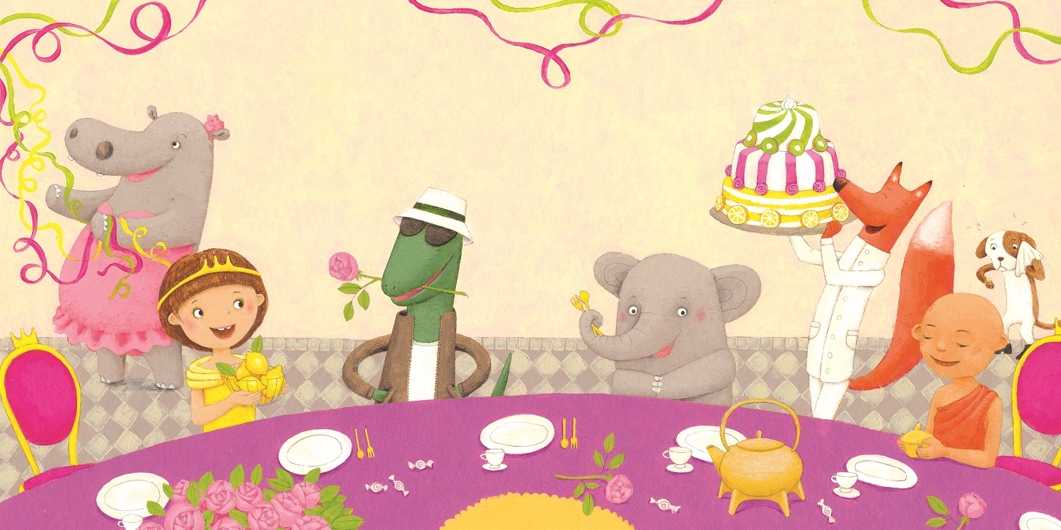 Today’s program was more successful. I had a tea party! Ever since reading How the Queen Found the Perfect Cup of Tea, I knew I wanted to use the story in a tea party setting. The Festival provided the perfect time. I bought some moon cakes, palmiers, and milk tea and set up a proper tea table, cutting the moon cakes up so everyone could share, laying out bags of palmiers so I’d have extra food on hand, and pouring cups of milk tea for everyone. I was able to accommodate 10 kids and 4 parents, with no leftovers and a very happy group!