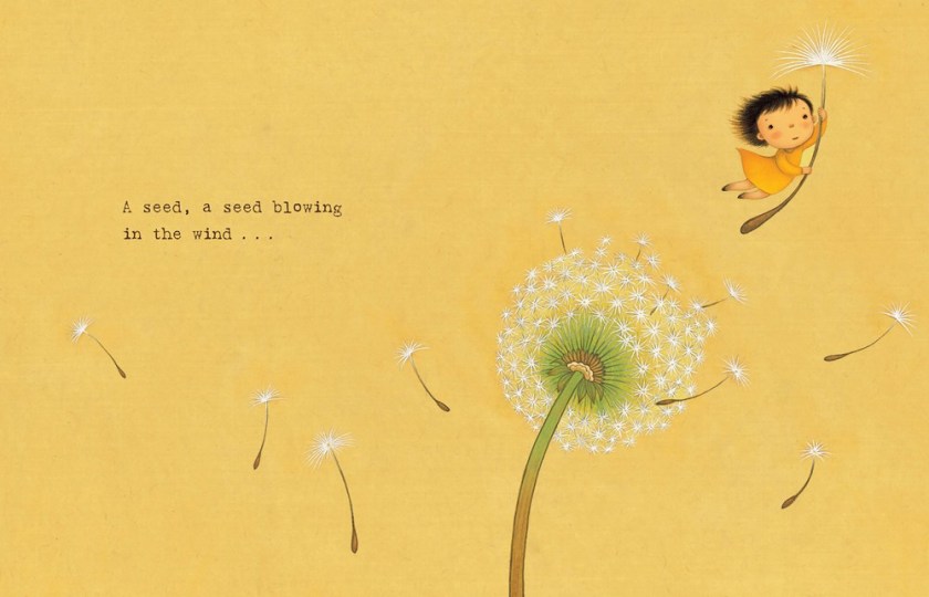 Originally published in Korean in 2013, this is a gentle story that reads like poetry, describing seven types of flowers that bloom from different types of seeds and became beautiful flowers: “A seed, a seed blowing / in the wind… / took root in / the wild and bloomed / as a dandelion”. Children show up in the flowers as seeds and fully bloomed, showing readers that we can bloom under all sorts of conditions. A soft color palette creates a soothing setting, and the flower illustrations are breathtaking. A wonderful metaphor for how we grow and our beauty in diversity. My only concern is a pssage that describes a seed as “ugly and wrinkled”, which reads more like the author is referring to the child as unsightly; I’m hoping it was more of a moment where the child may feel that way but blossoms into themselves? Other than that, You Are a Little Seed is lovely.