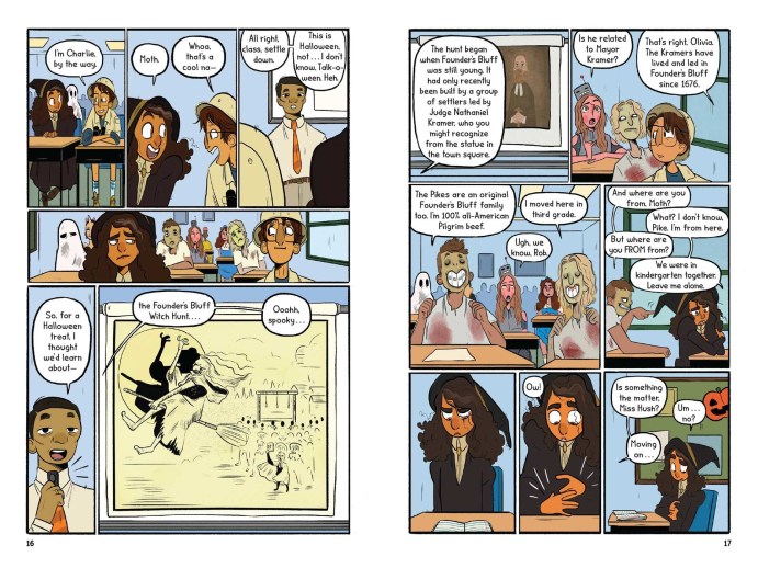 The follow-up to 2019’s The Okay Witch takes on some big issues, and it’s so good. We get a quick recap from Lazlo the Cat (if you don’t remember him, or haven’t read the first book yet, don’t worry: he’ll catch you up nicely). Moth and her mom are still hanging in there, and the racist and creepy jerks at her school are still… racist and creepy. Moth is stressed out, frustrated, and no one can quite understand; even her best friend, Charlie, isn’t able to. The minute Moth pushes back against her tormentors, she’s the one taking the heat and she’s the one who “can’t take a joke”. Issues of race and equity take center stage here in a way that kids can identify with and understand; others will hopefully gain more of an understanding. Adults could do with reading this book, too; there’s a moment when Moth chafes at having to attend a school founded by someone who tried to wipe out witches that really eloquently frames what I like to call “the great statue debate”.