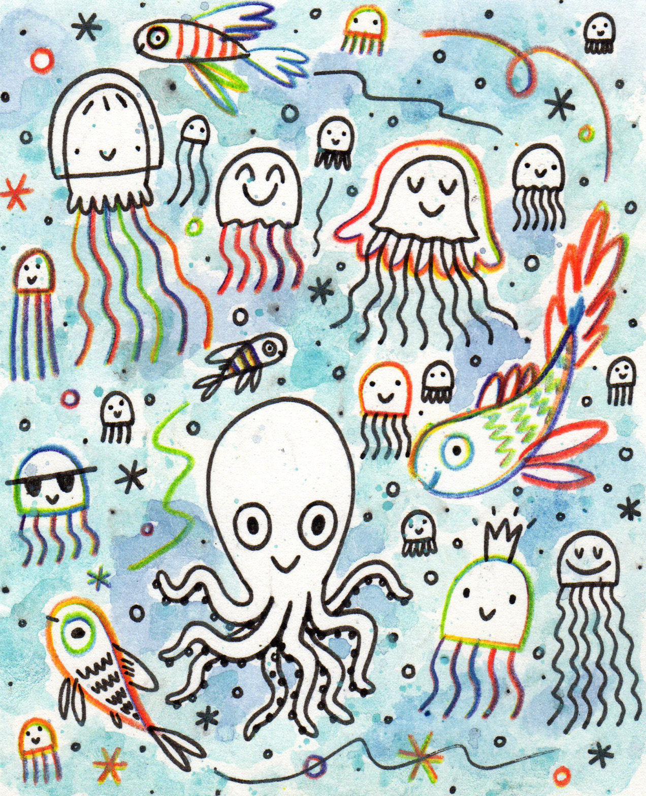 Ben Clanton has some fun extras available online. His website links to his Instagram, if you want to see even more of his art as he posts it; the site hosts his blog, which spotlights even more of his artwork, including this awesome “Jellin'” piece: