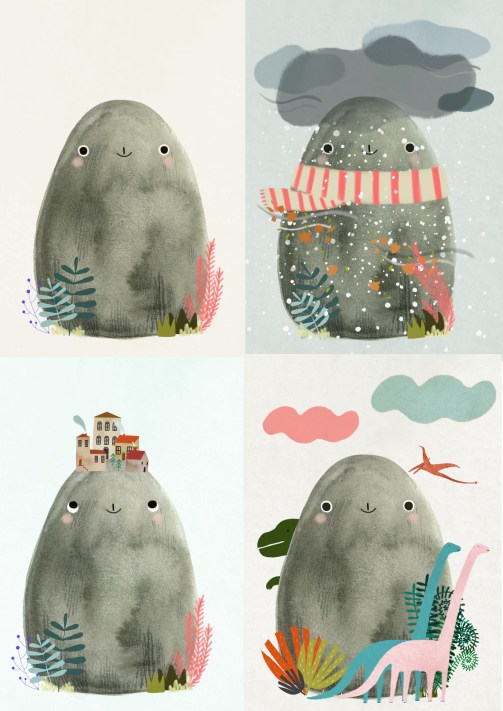 Meet Petra. She’s an eternal, unmoving mountain. But, wait – a dog picks Petra up and brings her to its owner, who tosses her into a bird’s nest. No worries. She’s an egg, loaded with potential, once she hatches. Oops, nope… Mama Bird has returned, and tosses Petra into a lake. No problem. She’s an amazing island! Oh… now, she’s in a young girl’s room, where she’s transformed… into something new and exciting. You see, Petra isn’t stressed about it: she’s all about the present; experiences; potential and becoming. And that’s what makes this book, and this rock, such a wonderful read. Petra is along for the journey, not the destination. She is laid back, and lives in the moment. She’s happy with herself and in whatever situation she finds herself, because she’s able to find the excitement and joy – thanks, in part, to her vivid imagination – in everything. Can you think of a better outlook?