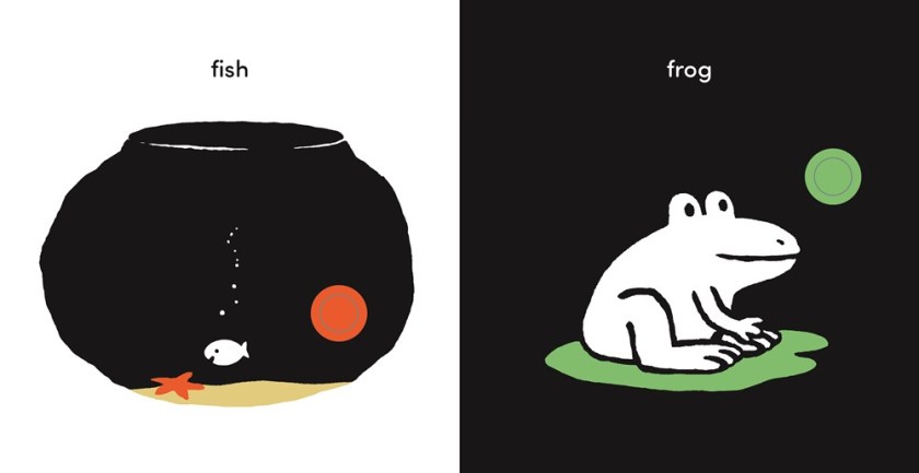 This is a board book that’s begging for an art storytime activity. A narrator considers different things their hands can be: an apple tree, a hen, an octopus, a lion, a flamingo, a butterfly, a garden, or a heart. Handprints form the basis for the illustrations, with a glossy allowing readers to touch and glide their own hands over the book’s, and place their hands over the illustrations to see how their own hands fit. Thoughtful illustration shows readers how to add to their initial handprint to create, for instance, a flamingo’s long neck or an octopus’s waving arms. Fun sound effects for each spread allows for an interactive storytime where readers can crunch apples, cluck like chickens, bloop like an octopus, or roar like lions. This book is another great addition to storytime and board book collections: it’s a program and book, all in one!
