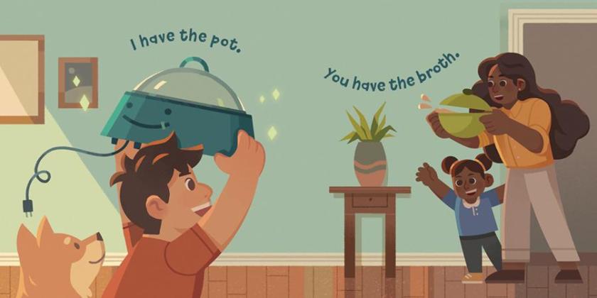 While we can’t eat together as often as we’d like these days, there’s always Zoom and Google Meets. Try a virtual storytime and dinner one night! Publisher Charlesbridge has loads of free downloadables for a Hot Pot party!