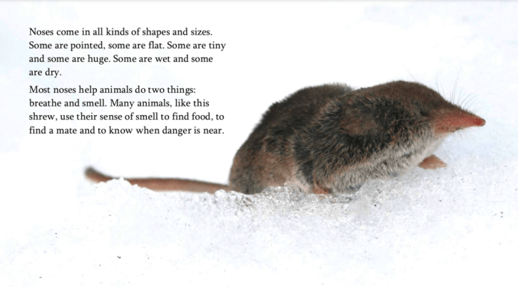 Arbordale always has good back matter, too: their For Creative Minds sections allow for photocopying and distribution for educational use. The Animal Noses For Creative Minds covers fun facts about scent, a match the nose game, and spotlights animals with great senses of smell.